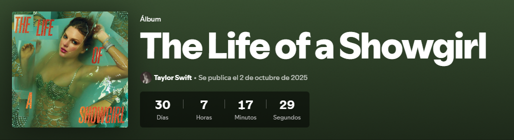 El nuevo álbum de Taylor Swift, que saldrá oficialmente el próximo 3 de octubre de 2025, ya es el álbum con mayor número de "pre-saves" en la historia de Spotify. Este récord no es poca cosa, especialmente considerando que el título anterior también pertenecía a la propia Swift, con su exitoso disco del año pasado: "The Tortured Poets Department".